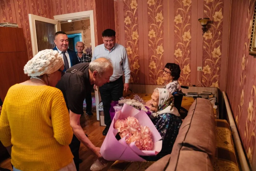 Поздравить с 108-летием жительницу Семея решили чиновники. Они нагрянули в гости к Анне Казаченко с цветами и подарками.