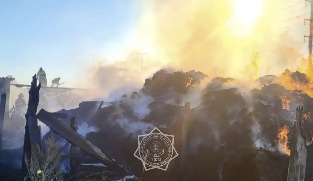 К приезду пожарных заготовленный на зиму корм для скота полыхал на большой площади, сообщает CMN.KZ со ссылкой на МЧС РК