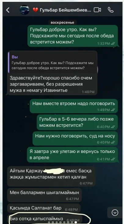 «На протяжении всего процесса мы защищали и поддерживали семью. К сожалению, ситуация превратилась в примитивное противостояние. На конференции мы хотели выйти достойно и мирно, но вместо этого столкнулись с грязной информационной войной. Теперь же меня просто обливают грязью. Тем не менее, моя цель остается неизменной - добиться справедливости для Шерзата», - заявил он.