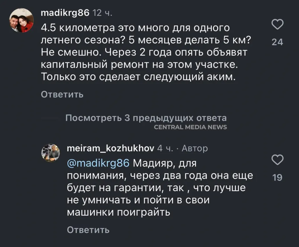 Стоит отметить, что Мейрам Кожухов – активный пользователь соцсетей и о своей работе зачастую рассказывает в Instagram. Кроме этого, аким охотно отвечает на комментарии недовольных горожан.