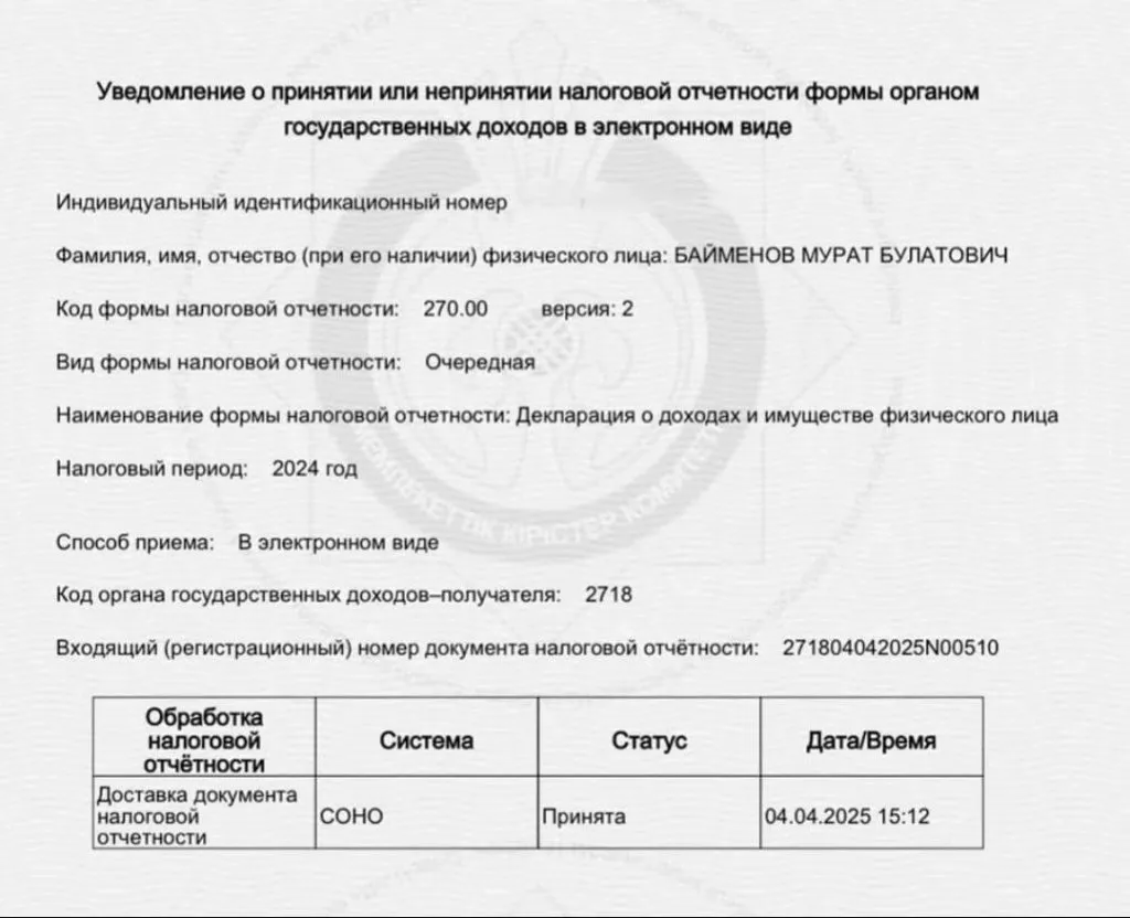 Аким Уральска Мурат Байменов на своей странице в соцсетях опубликовал декларацию о доходах. В описании он указал, что делает это по просьбам журналистов, сообщает CMN.KZ.