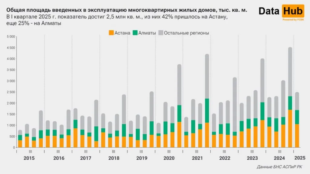 Доля Алматы и Астаны во вводе многоквартирного жилья добралась до максимума за восемь лет, передаёт CMN.KZ