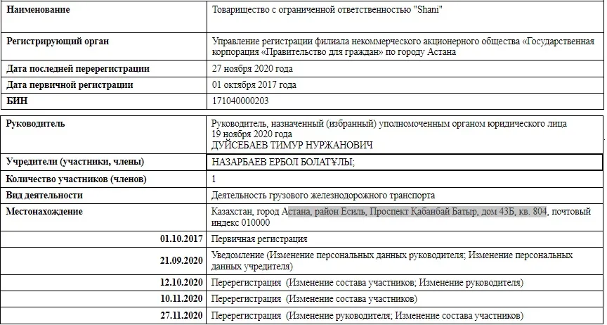 Сейчас организация занимается деятельностью грузового железнодорожного транспорта. Директорское кресло занимает тот самый Тимур Дуйсебаев, который ранее владел предприятием Акботы Назарбаевой.