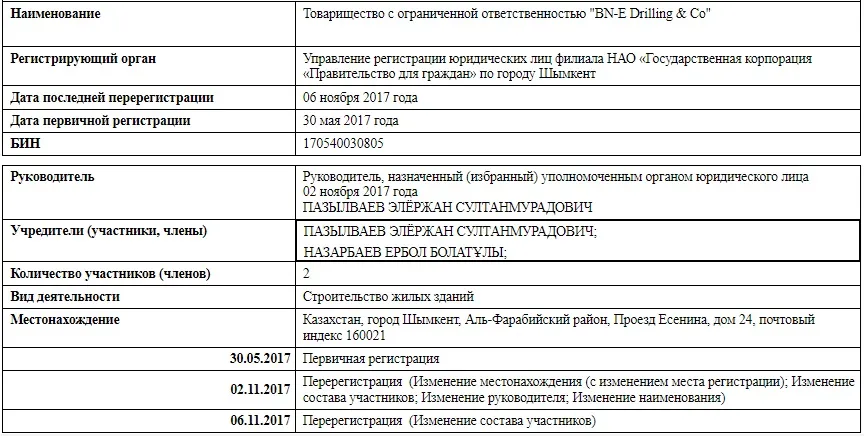У предприятия были две лицензии на строительно-монтажные работы III категории, одна из них уже недействительна. Вторую BN-E Drilling & Co получил сразу после приобретения компанией Ерболом Назарбаевым – 15 ноября 2017 года. Имея на руках такую бумажку, племянник на тот момент президента мог заниматься инженерными сетями, автомобильными и железными дорогами, пусконаладочными работами и прокладкой линейных сооружений.