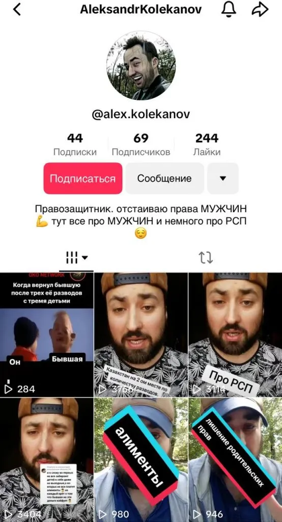 В профиле TikTok он прямо пишет, что отстаивает права мужчин и поднимает вопросы относительно разведённых женщин, которые воспитывают самостоятельно детей. По его словам, современные мужья разбаловали своих жён, что привело к росту разводов, инициаторами которых являются именно девушки.