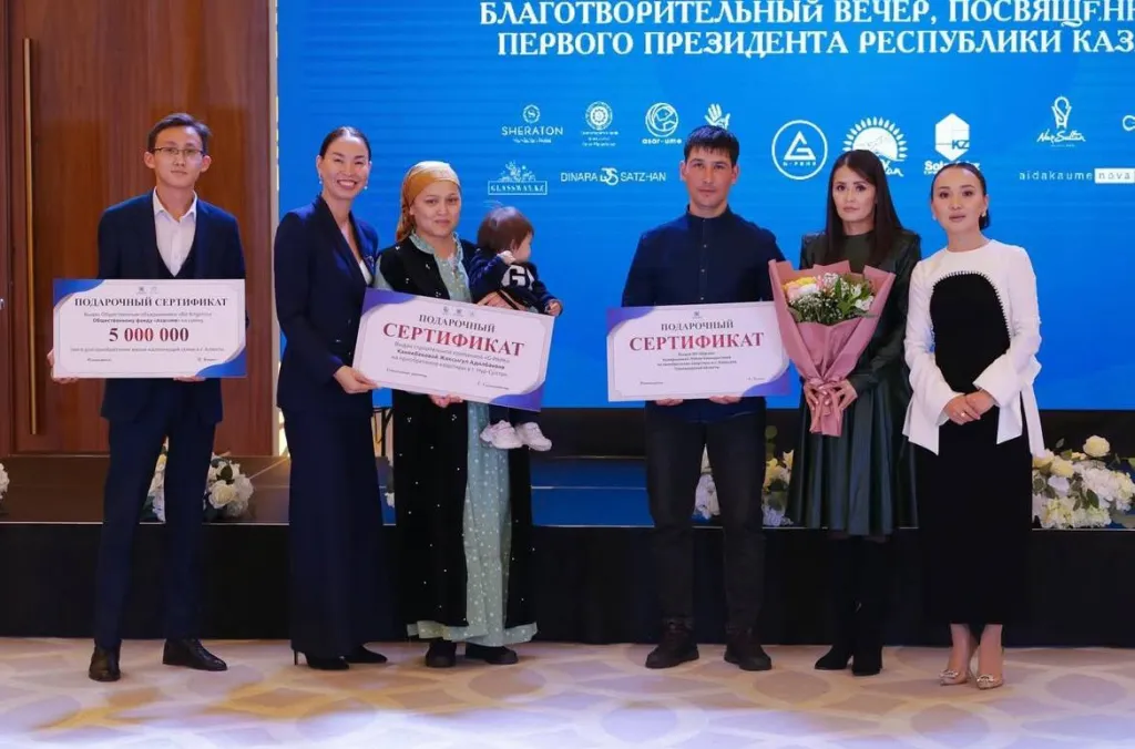 }}На вечере генеральные спонсоры подарили две квартиры многодетным семьям, а ещё одной семье вручили сертификат на 5 млн тенге на покупку жилья. Щедрыми донорами стали глава строительной компании «G-Park» Габит Сатмагамбетов и руководитель корпорации «SolarA. kz» Асель Жолмуханова.