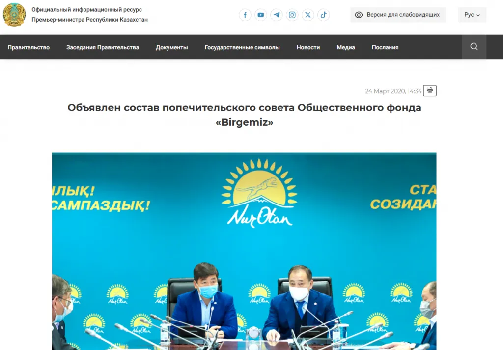 В конце своего поста Перизат Кайрат сердечно благодарит сразу несколько высокопоставленных государственных служащих и партию NurOtan. Примечательно, что когда в ноябре 2024 года разразился скандал, партия открестилась от фонда BizBirgemiz, но следы их сотрудничества остались.