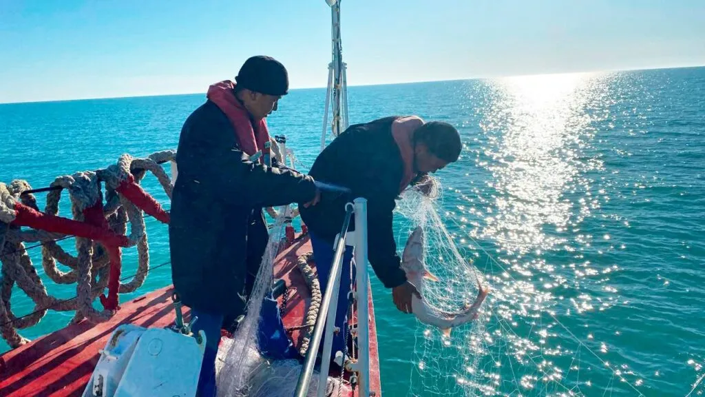 63 нарушителя, которые ловили осетровых в сети, поймали пограничные службы в акватории Каспийского моря.