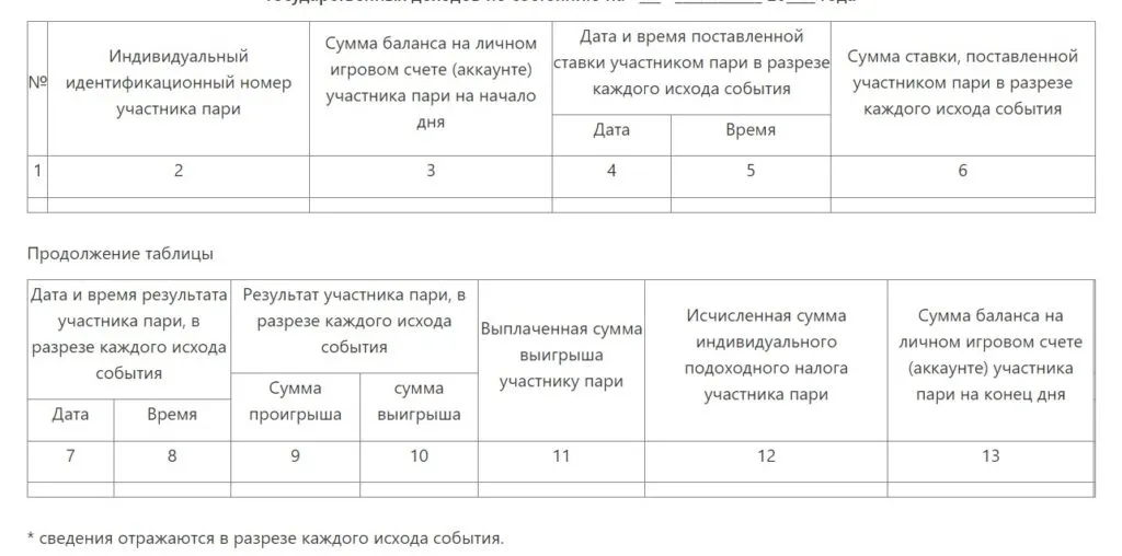 - индивидуальный идентификационный номер участника пари;