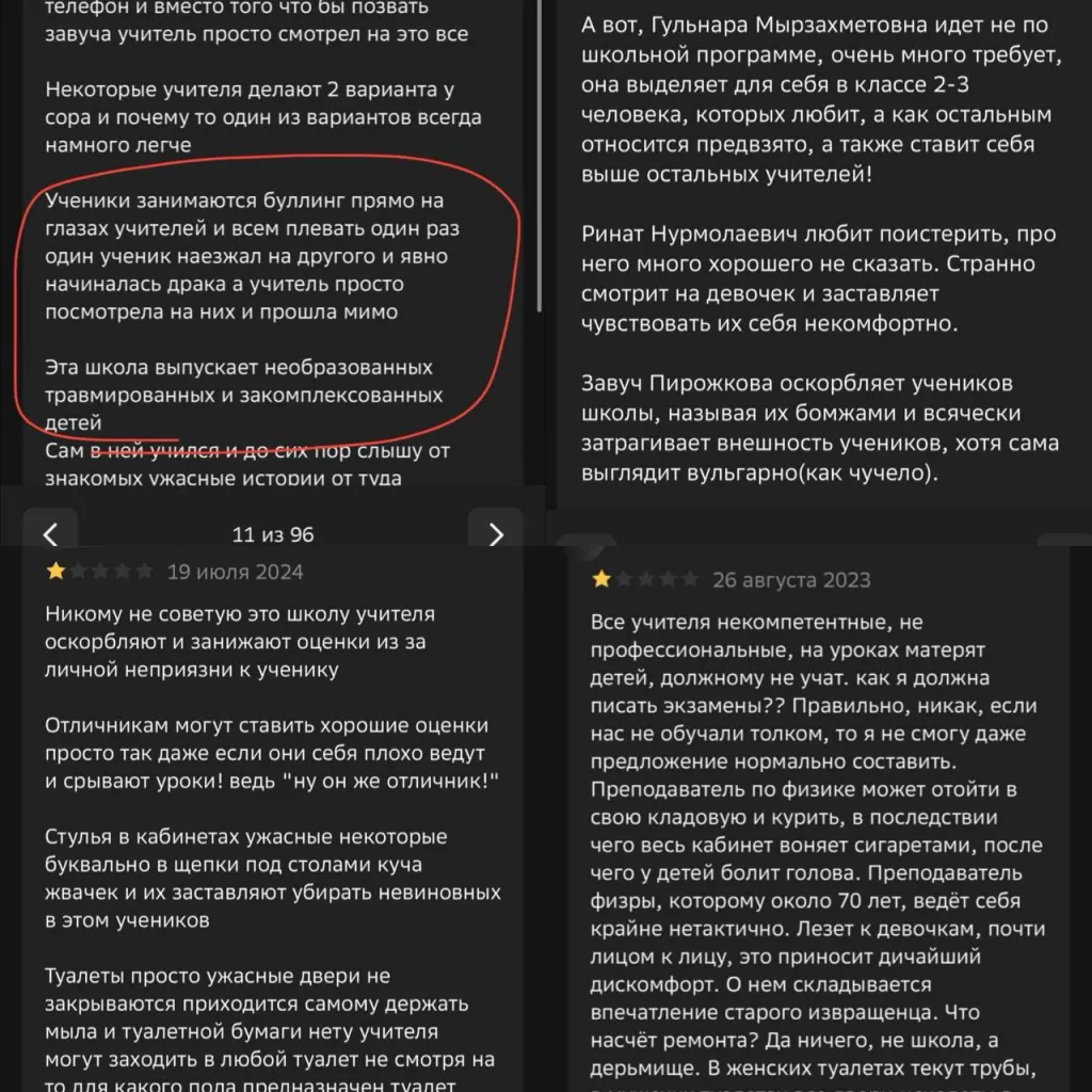 Отметим, что пользователи популярного электронного справочника карт города достаточно нелестно отзываются о гимназии №120. Ученики пишут, что в школе действительно процветает буллинг как со стороны преподавателей, так и учеников.