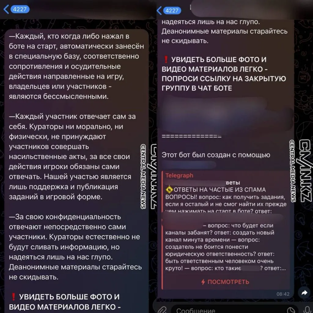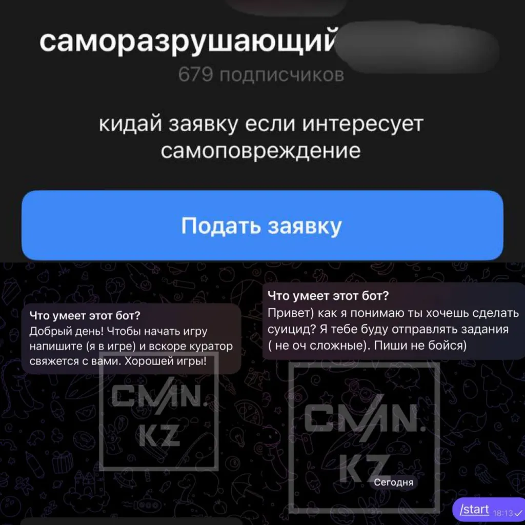 Корреспондент CMN.KZ также обнаружил чат-боты и группы в социальных сетях, пропагандирующие насилие и самоповреждение.