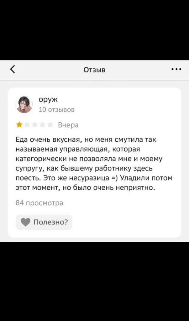 Когда они пришли в качестве клиентов, управляющая ресторана выгоняла пару, так как мужчина – бывший сотрудник ресторана. Автор поста отметила, что её муж уволился по собственному желанию без скандала.