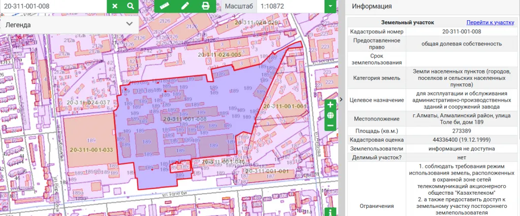 Вся недвижимость находилась на одном земельном участке – улица Толе би, 189. Новому владельцу от 37,6 га отходило 3,09 га в рамках общедолевой собственности.