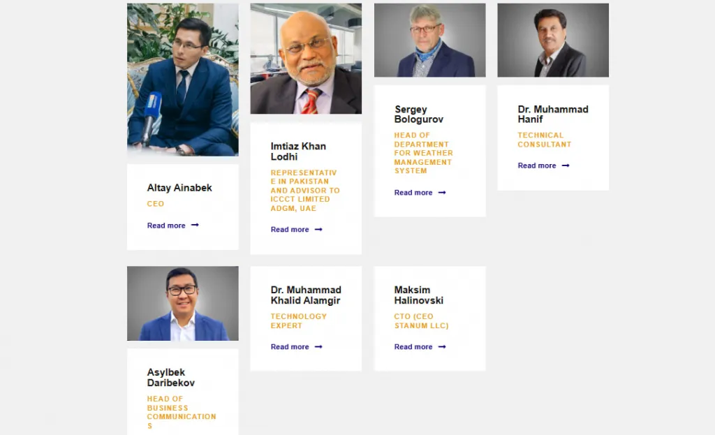 В графе «Команда» на сайте компании числятся семь сотрудников. Айнабек же указан как главный исполнительный директор.
