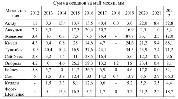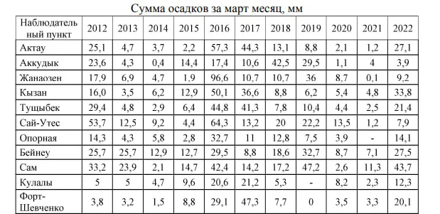 Таблица 2: Наибольшее месячное количество осадков за период 2014-2023 гг., мм, / Источник: РГП «Казгидромет».