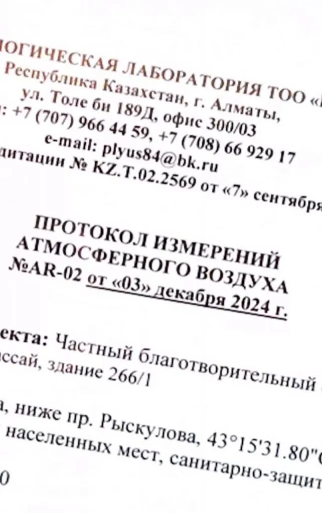 CMN.KZ обратилась за комментариями в лабораторию. Там подтвердили, что проводили замеры атмосферного воздуха 27 и 29 ноября по запросу фонда Айнабека. Однако результаты замеров не предоставили, отметив, что двухдневные исследования не могут объективно оценить влияние технологии на атмосферу.
