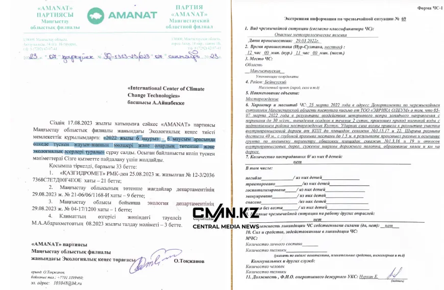 Однако на запрос предоставить эти документы он прислал информацию, касающуюся испытаний технологии в Мангистауской области в 2022 году.