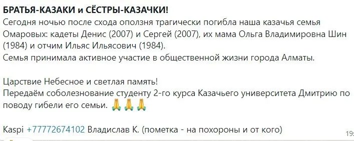 Журналистам CMN.kz удалось выяснить, что погибшие из-за небольшого оползня в алматинском микрорайоне Тау-Самал занимались активным отдыхом и участвовали в общественной жизни города. Тем временем, близкие и родные Ольги, Дениса и Сергея Шин приносят свои соболезнования и уже объявили сбор средств.