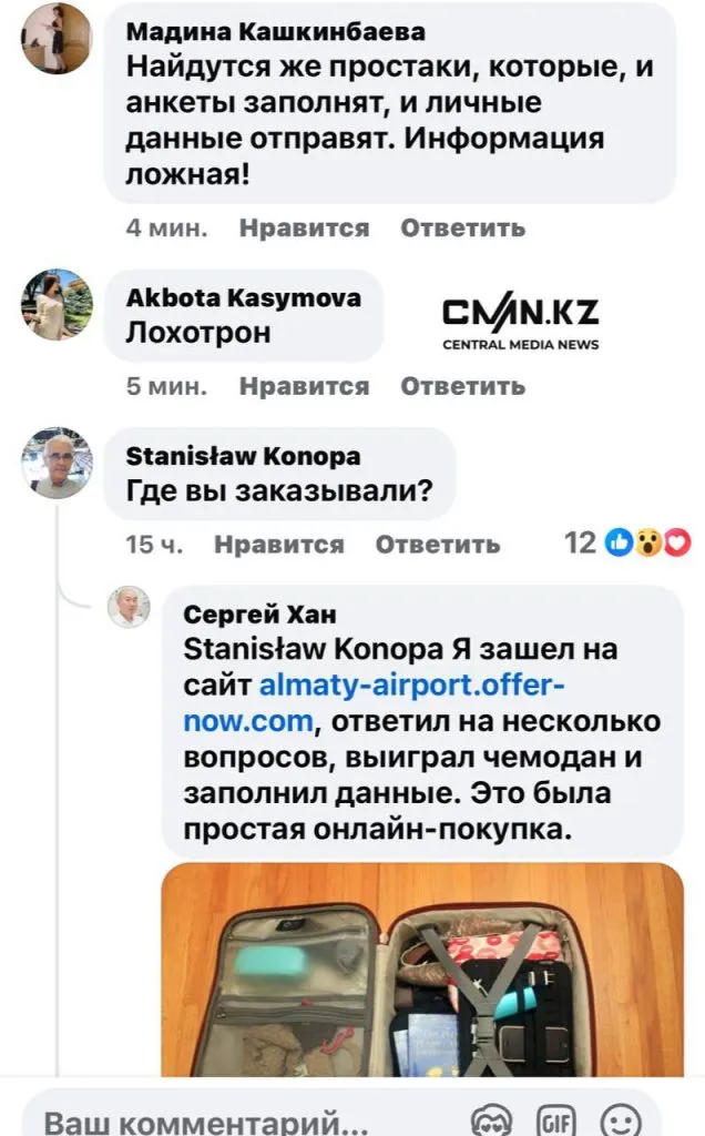 Доверчивые казахстанцы тут же проявили интерес к "распродаже". В комментариях под постом рекламы пользователи охотно обсуждают потенциальные находки. Некоторые хвастаются, что уже заказали доставку, надеясь получить чей-то забытый чемодан.