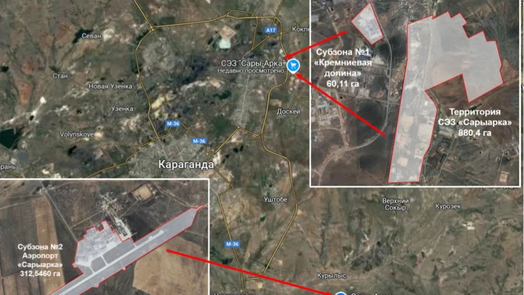 Аэропорт «Сарыарка» включат в одноимённую СЭЗ, её территория расширится до 1253 га. В её состав войдут: