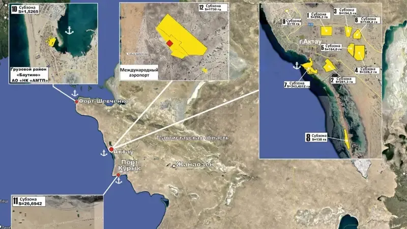 Территория СЭЗ «Морпорт Актау» после включения аэропорта увеличится почти вдвое — до 3656 га. Помимо существующих портовой и индустриальной зон, добавится новая — логистическая зона на площади 1730 га. Исходя из проекта, она будет включать объекты для туризма, жилой застройки и производства.