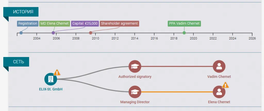 С его приходом у ТОО появилась новая редакция устава или положения. Следующая смена владельца произошла в марте 2023 года – компанию приобрёл Александр Чернет. Предположительно, его родственники через немецкую организацию Elix-St (основатель Елена Чермет, с 2019 года в компании стал работать и Вадим Чернет) переправляли в Казахстан созданные микросхемы для промышленных электрических деталей и бытовых электронных приборов.