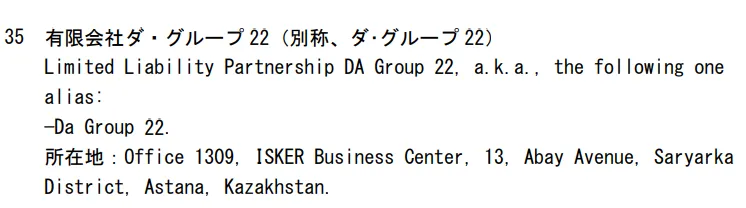 Неизвестно, поменялась ли схема с приходом нового владельца в ТОО "Da Group 22" в январе 2024 года, но факт остаётся фактом. Компания снова попала в санкционный список, но теперь японский.