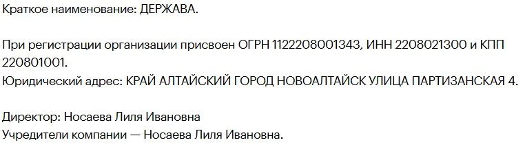 В России была компания ООО "Держава", которая принадлежала её полной тёзке – Лиле Ивановной Носаевой. Зарегистрировали организацию в городе Новоалтайск в Алтайском крае. Занималось предприятие торговлей оптовыми непродовольственными потребительскими товарами. По удивительному стечению обстоятельств, 10 января 2025 года ООО реорганизовали.