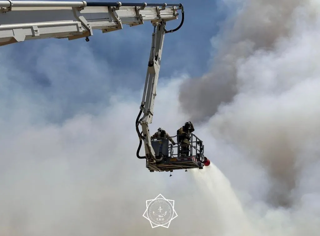 Крупный пожар тушат на территории индустриальной зоны «Ордабасы», на территории ТОО «KMG Supple Company». Там на открытой территории произошло загорание технической газовой чешуйчатой серы.
