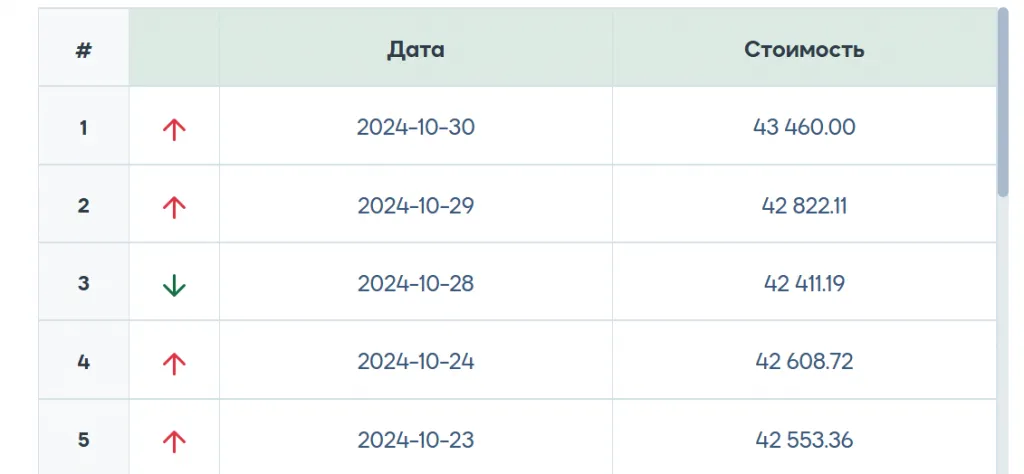 По данным Нацбанка РК на 30 октября 2024 года, цена на золота остановилась на отметке в 43 460 тенге за грамм. Это на 1,5% больше, чем 29 октября (42 822,11 тенге за грамм). А если сравнивать с началом месяца, то на 6% больше, чем на 1 октября (40 999,46 тенге).