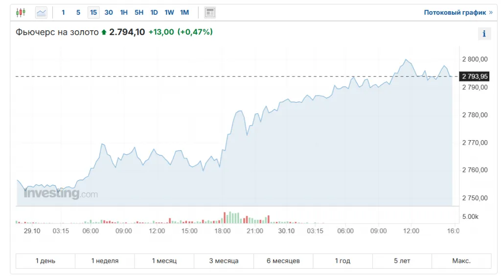 На сегодняшний день, стоимость золота почти достигла отметки в 2 800 долларов за унцию.