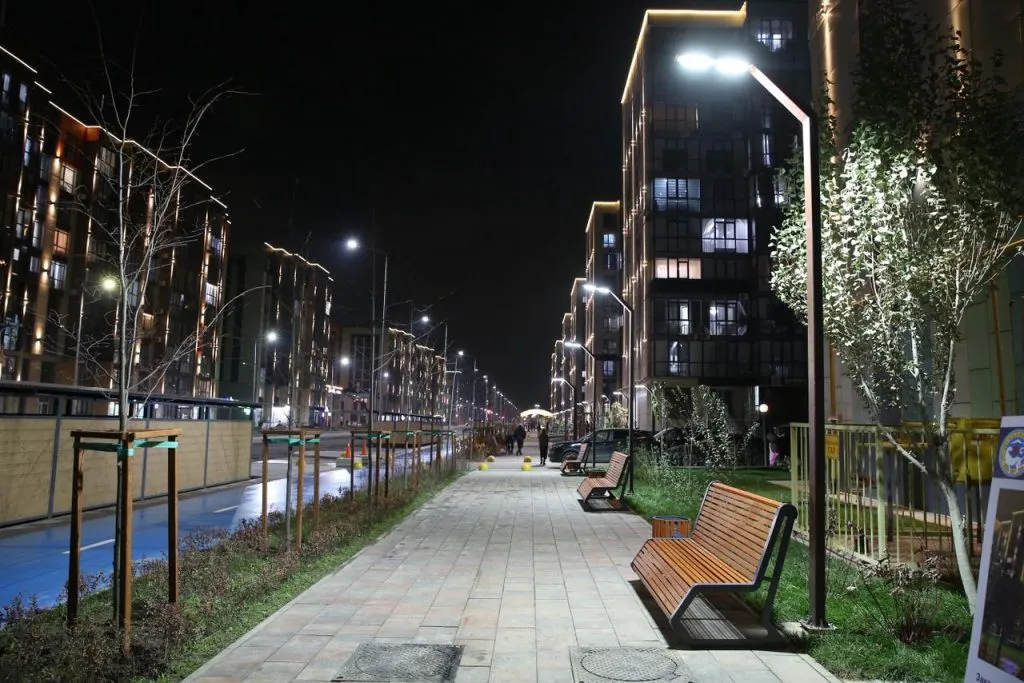 Финальной точкой объезда стал жилой комплекс «Нурлы Дала» на проспекте Райымбека. Здесь тоже завершили установку подсветки фасадов — проект охватывает восемь домов. Благодаря современным технологиям дома теперь выглядят эффектно и в вечернее время.