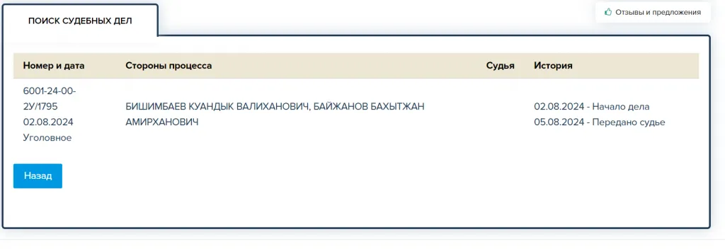 В судебном кабинете появилась запись о том, что 5 августа материалы переданы судье, сообщает CMN.KZ