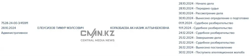 CMN.KZ выяснил, что 30 декабря 2024 года Елеусизов подал апелляционную жалобу в суд. Дата разбирательства неизвестна.