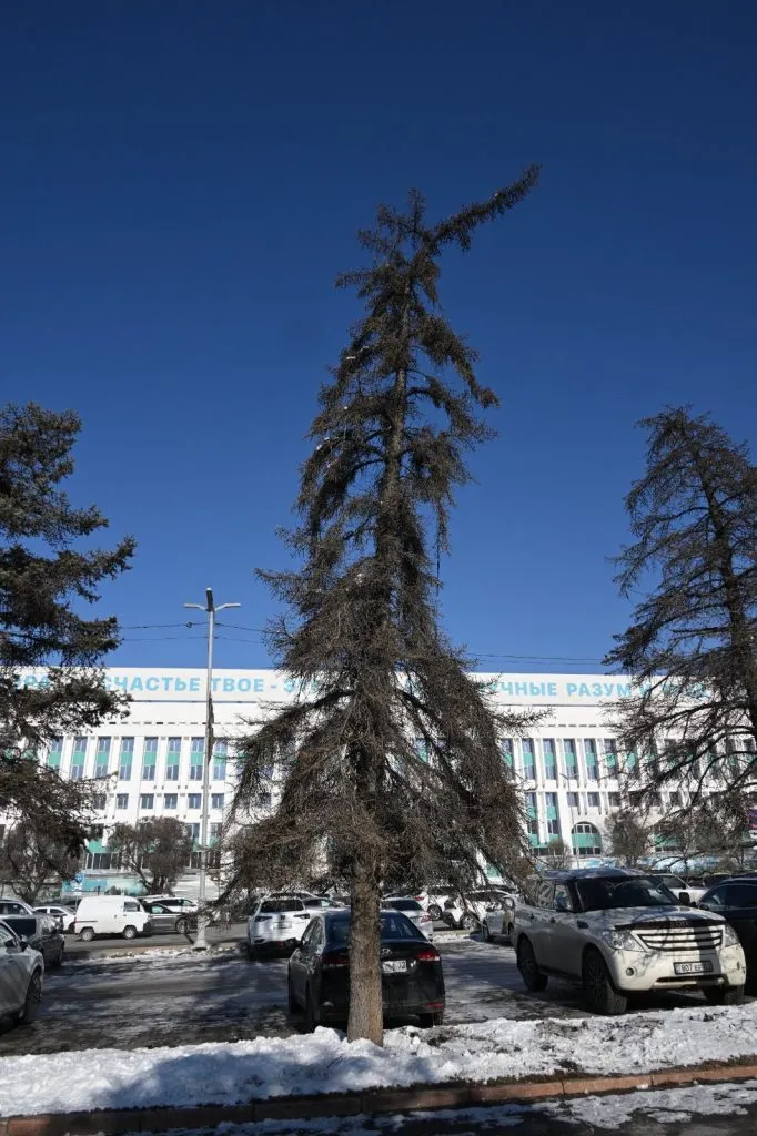 На парковке вдоль улицы Сатпаева в Алматы эксперты выявили деревья с усыхающей хвоей. Как отметил научный сотрудник КазНИИ защиты и карантина Нуржан Мухамадиев, все ели в угнетённом состоянии. Это связанно со скрытым течением патологического процесса из-за внутренней гнили ствола, объяснил он.