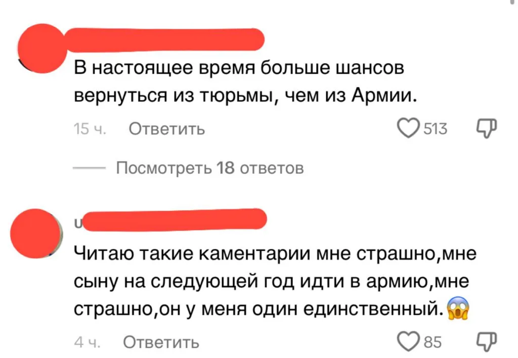Под его постом другие пользователи сети выражают не только соболезнования, но и опасения относительно военной службы.