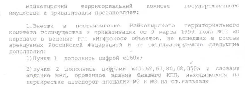 Как оказалось, речь идёт про взорванные шахтно-пусковые установки (ШПУ) и недостроенное здание, которые передали "Инфракос" ещё в 1999 году. Они оказались не нужны России, когда заключался контракт на аренду космодрома.