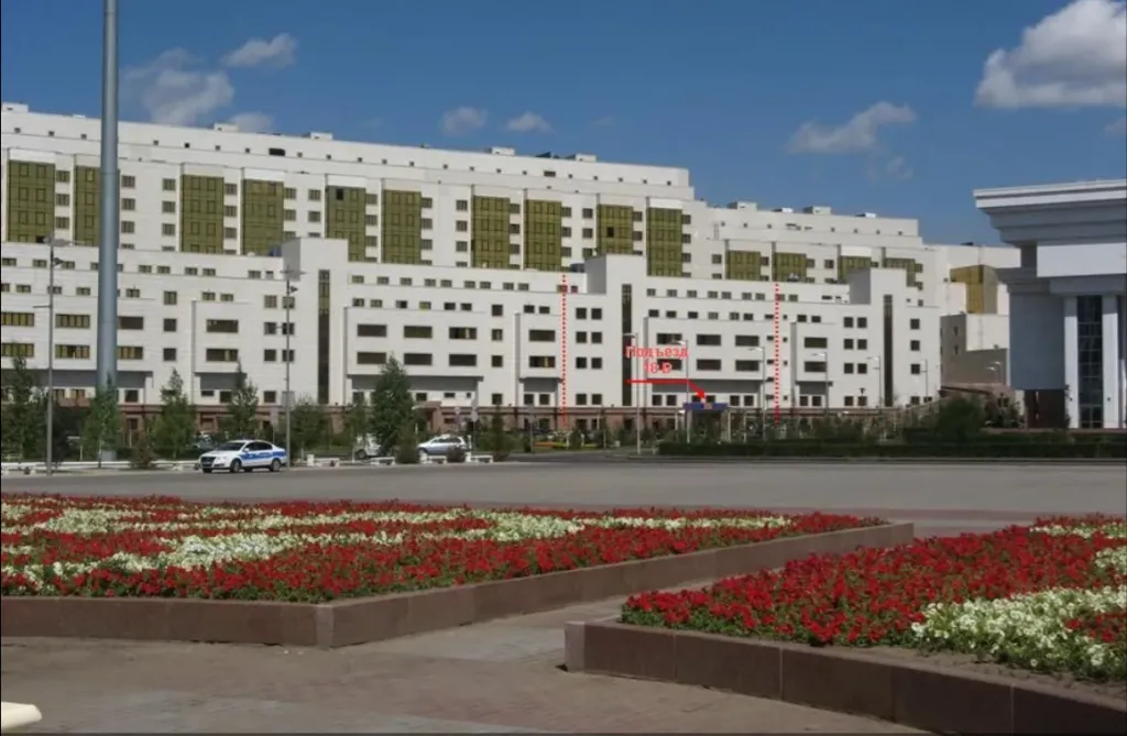 Судя по фото, речь идёт о подъезде 18В. Вход в эту часть здания находится со стороны Акорды. Из окон открывается вид на фонтаны, цветочные клумбы и резиденцию президента.