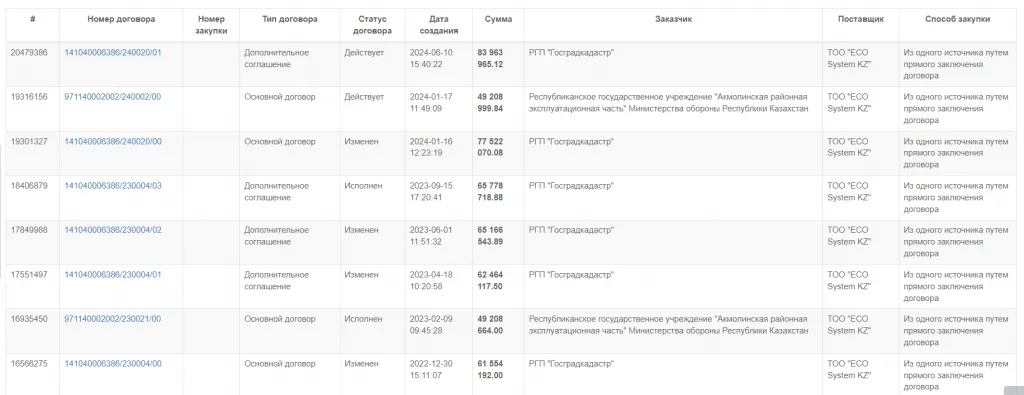 С 2015 года компания ECO SYSTEM KZ пополнила казну государства на 182 997 007,41 тенге. Самую большую сумму налогов компания уплатила в 2020 году – 48 млн тенге.