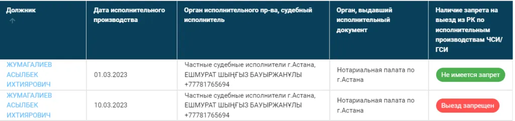 10 марта 2023 года частный судебный исполнительный исполнитель выставил ему ограничение – запрет на выезд из страны. Известно, что во второй раз он задолжал почти 310 тысяч тенге микрофинансовой организации "ВЗАЙМЫ"".
