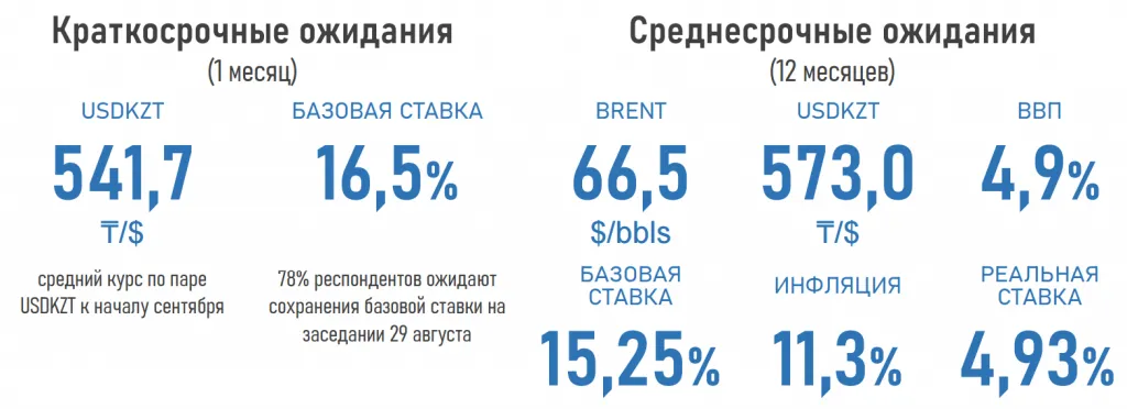 "В краткосрочной перспективе эксперты пока не видят срочной необходимости в повышении базовой ставки. 78% опрошенных аналитиков прогнозируют её сохранение на предстоящем заседании Нацбанка, которое состоится 29 августа. Остальные 22% допускают её повышение до 16,75 - 17%".