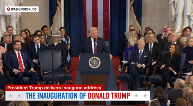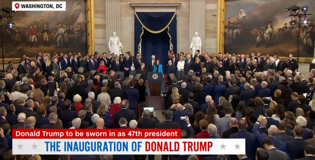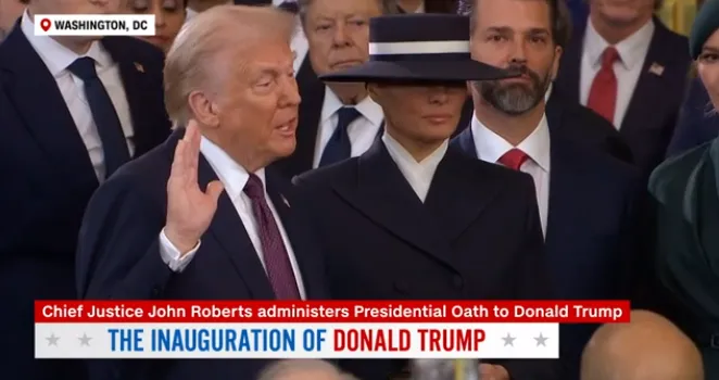 В Капитолии избранный президент Дональд Трамп принес присягу президента и вступил в должность президента США. Это второй его срок на этом посту, а в истории США это 47 президент. Пока Трамп зачитывал клятву, его жена Мелания Трамп держала библию, на которую он положил руку, сообщает CMN.KZ со ссылкой на CNN.