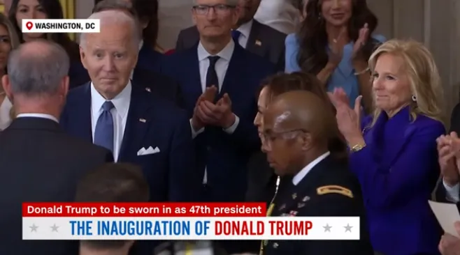 Ранее избранный президент США Дональд Трамп вместе с женой Меланией Трамп прибыли в Белый дом, где их встречали президент Джо Байден, первая леди Джилл Байден, вице-президент Камала Харрис и второй джентльмен Даг Эмхофф.