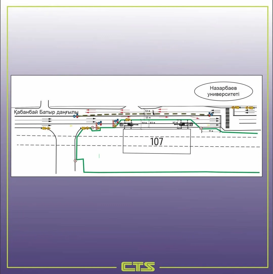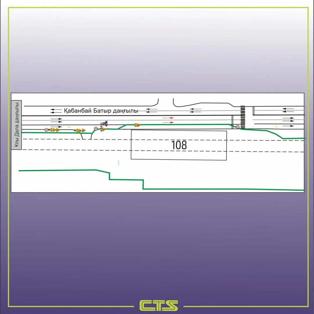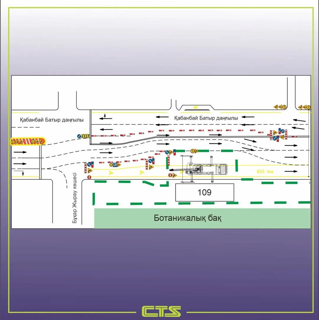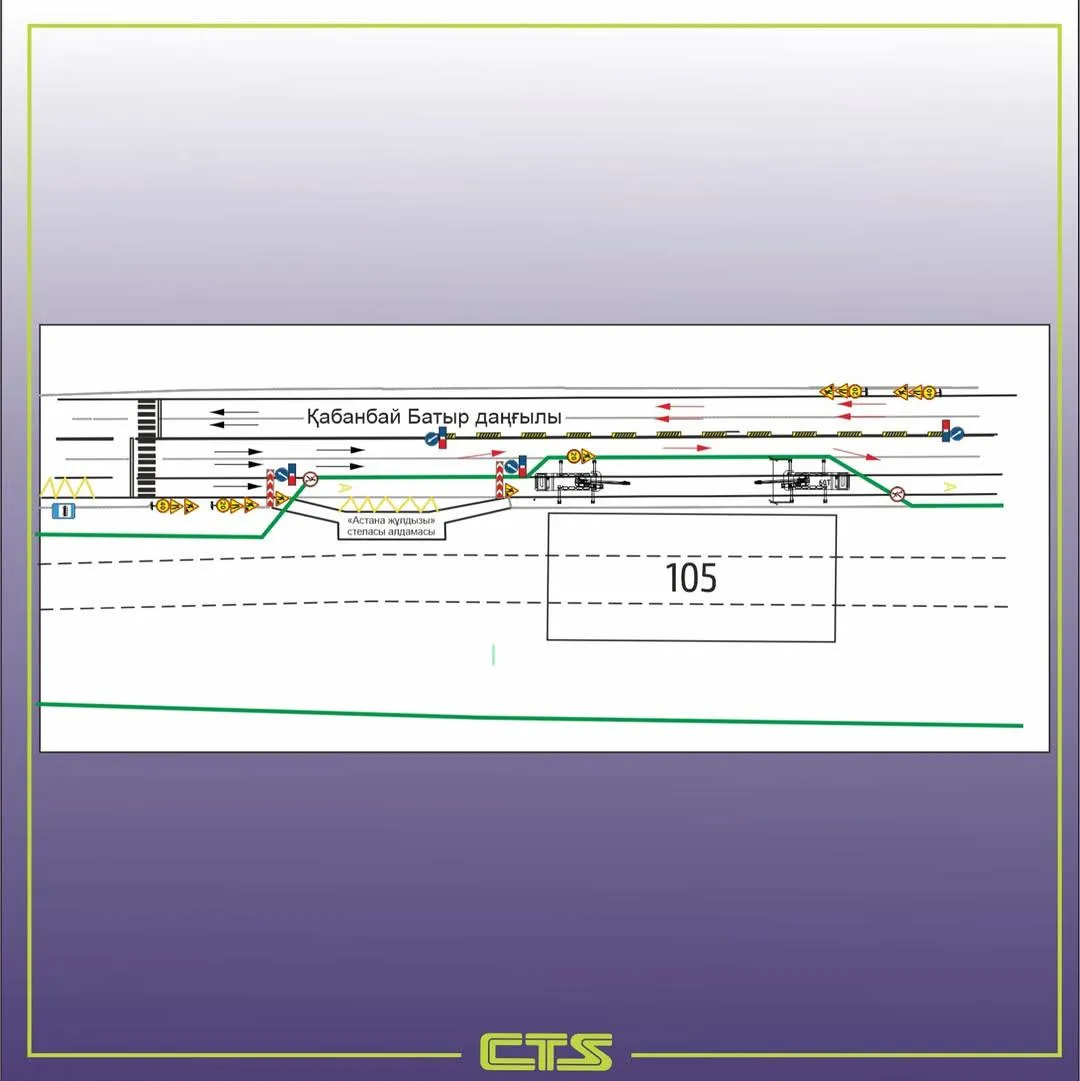 - с 23 марта по 5 июня – по пр. Кабанбай батыра на участке от ул. Бухар Жырау в направлении ул. Орынбор для выполнения работ по строительству фасада станции 109, производится частичное сужение автодороги на две полосы.