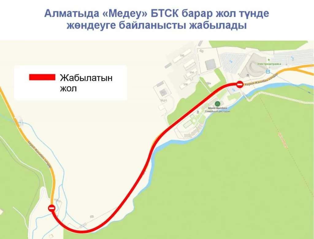 «С 23:00 15 августа до 7:00 16 августа движение будет перекрыто на участке от родника «Акбулак» до здания 558/1. Протяженность перекрываемого участка – 1,2 км»,— говорится в сообщении.