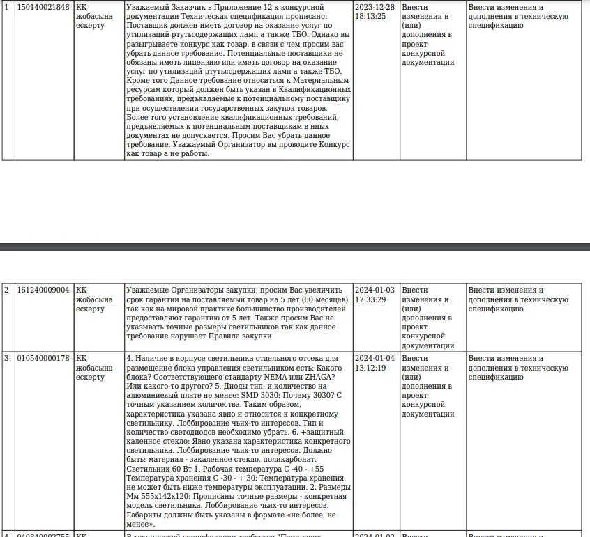 В конечном итоге лот отменили. Но интересно следующее: к закупке предъявили 16 замечаний.