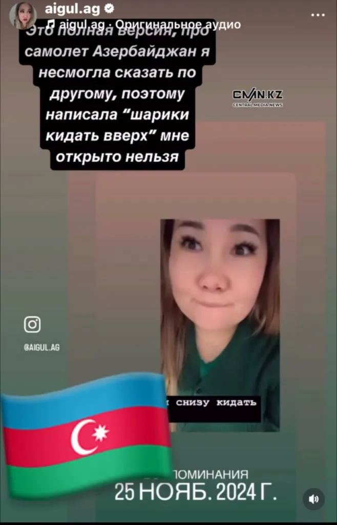 На странице в Instagram у Айгуль Бердыгалиевой более 350 тысяч подписчиков, где она периодически делится своими видениями. По её словам, она якобы предсказала крушение азербайджанского самолёта близ Актау ещё за месяц до катастрофы.