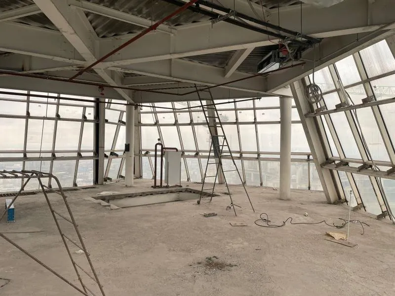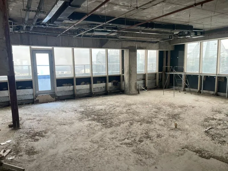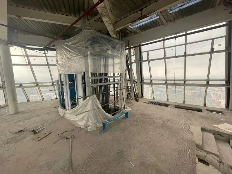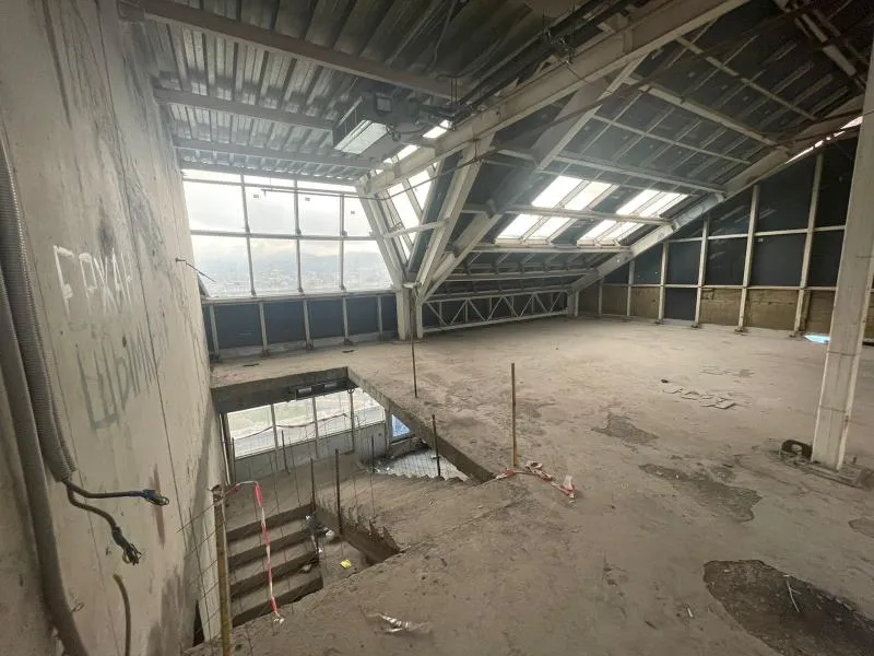 Стоит ли оно того? Если посмотреть на фотографии, то победителю тендера ещё придётся вложиться в ремонт нового имущества. Сейчас там только голые стены и лестница: никакого левкаса и уж тем более розеток. В общем, с 2013 года помещение находится в черновой отделке. Существенным плюсом приобретения станет панорамный вид на Алматы с высоты птичьего полёта.