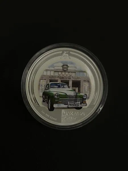 59 523 тенге отдал неизвестный покупатель за две серебряные монеты «Автомобиль GAZ M — 20» и «Автомобиль GAZ M — 1«. Обе номиналом в два доллара США.