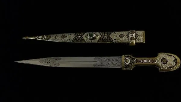 Нож в ножнах из жёлтого металла реализовали за стартовую стоимость в 155 281 тенге. Почти на 30 тысяч дешевле изначальной оценки.